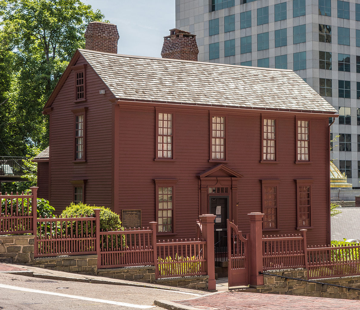The home of Declaration of Independence signer Stephen Hopkins, his family and their slaves for 4 decades, on Benefit Street’s “Mile of History.” Built in 1707 and enlarged in 1743, now furnished with period antiques and Hopkins heirlooms. Hopkins was elected Governor of Rhode Island ten times, served in the General Assembly, presided as Chief Justice over the Gaspee Affair, and represented the colony at both Continental Congresses.
